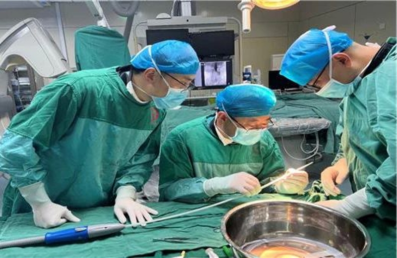 图片开展宁南地区首例“腹主动脉覆膜支架腔内隔绝术+左侧肾动脉开窗支架植入术”。